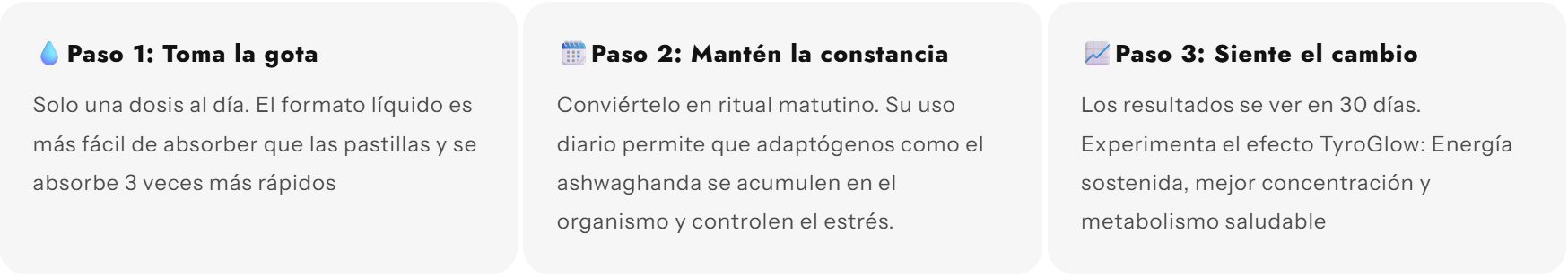 ¡Para nada! Sabemos que muchos suplementos líquidos tienen un sabor terrible. TyroGlow está formulado para tener un gusto muy suave y amigable. Podés aplicarlo directo debajo de la lengua, o si sos más sensible a los sabores, diluir el gotero en tu café de la mañana, un vaso de agua o tu batido. ¡Ni te vas a dar cuenta de que lo estás tomando!