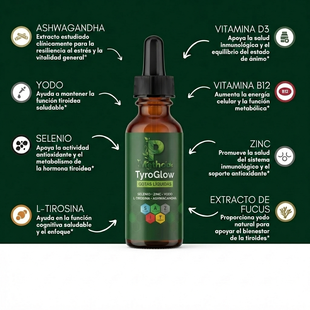 No, quedate súper tranquila. A diferencia de los "quemadores de grasa" genéricos que están llenos de cafeína o estimulantes artificiales, TyroGlow es 100% natural. Funciona nivelando tus hormonas y reduciendo el cortisol (estrés) gracias a la Ashwagandha. Vas a sentir una energía limpia y constante, sin nerviosismo ni bajones al final del día.